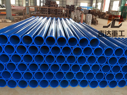 吉達重工第六代泵車雙層泵管、雙層彎頭引進超音頻淬火設備,高頻內(nèi)壁熱處理工藝,使內(nèi)壁表面形成58-68HRC、層3.2-3.7mm,使管道壽命達到60000-80000立方,比原來的普通泵車管道提高了3-5倍,延長了產(chǎn)品的使用壽命。